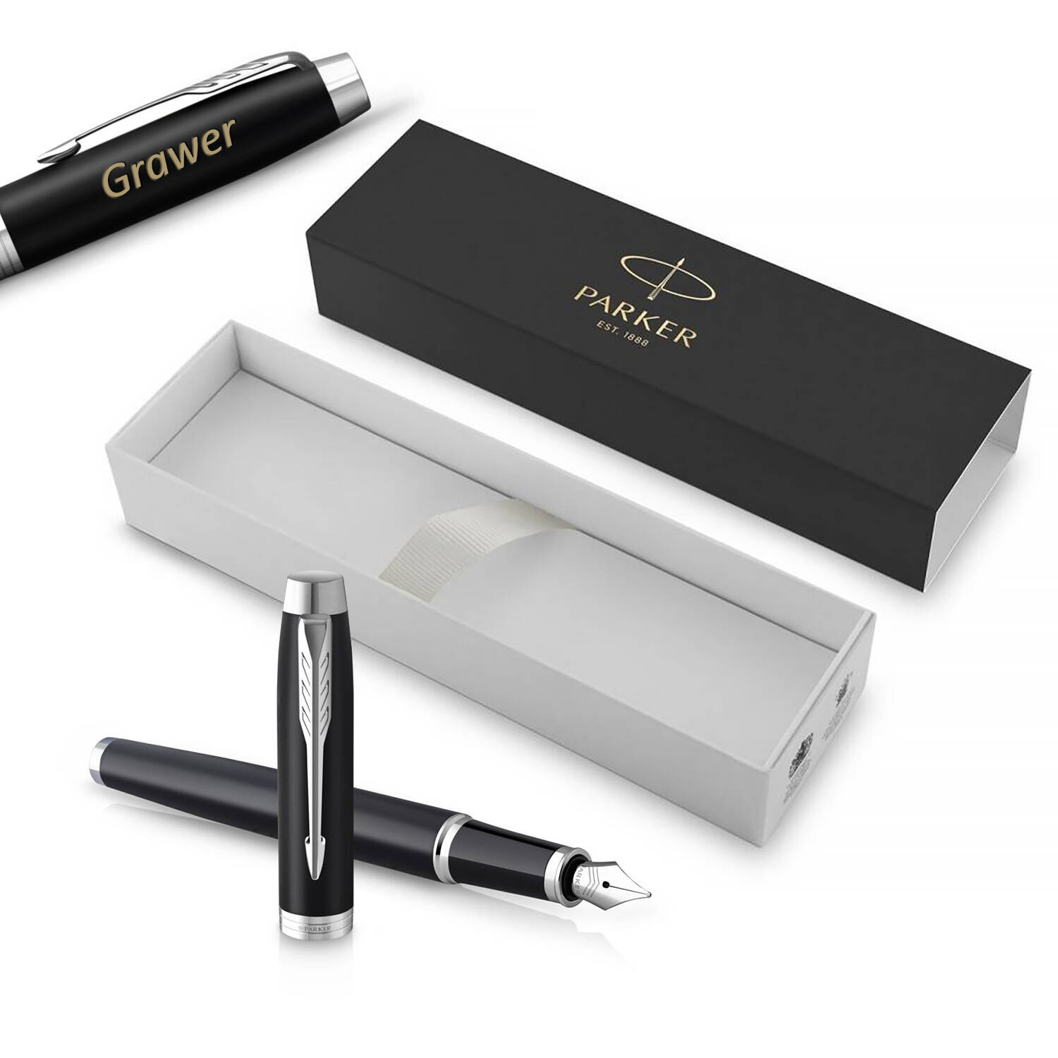 • Matowy czarny lakier z chromowanymi wykończeniami, uzupełniony charakterystycznym klipsem w kształcie strzałki PARKER