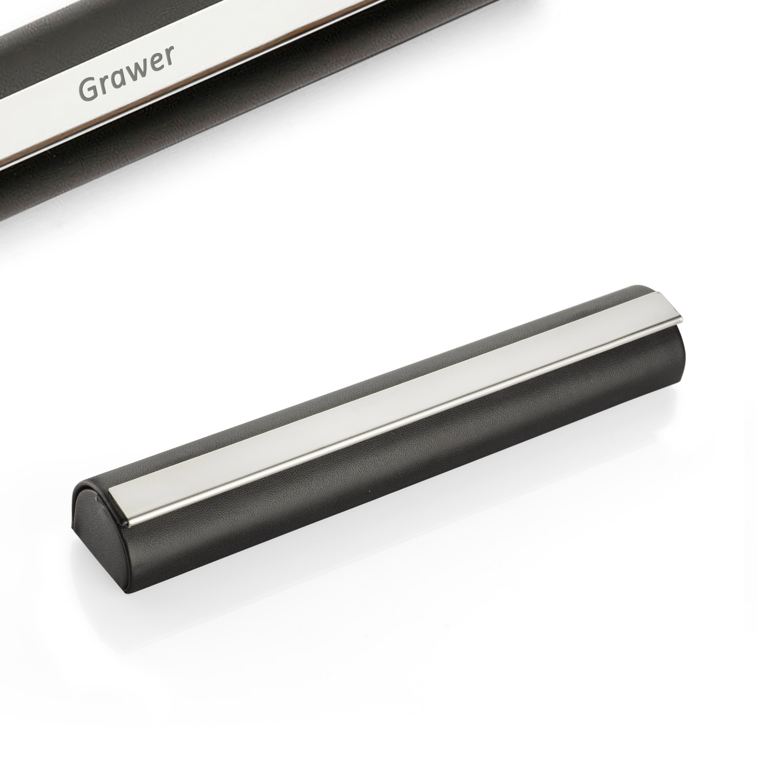 Doskonały pomysł na zapakowanie dowolnego artykułu piśmienniczego. Niezwykle eleganckie, zamykane na magnesy etui z czarnej ekoskórki zachwyca wykonaniem oraz funkcjonalnością. Wnętrze wyłożone welurem posiada gumkę do mocowania jednego artykułu piśmienniczego. Zamknięcie ozdobione metalową blaszką, na której możliwe jest wykonanie znakowania. Pasuje do wszystkich modeli długopisów.