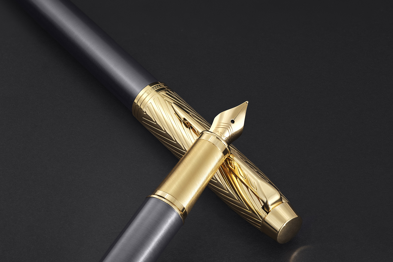 • Trwała stalówka wykonana ze stali szlachetnej pokryta złotą powłoką wykonaną techniką PVD. Na powierzchni wzory charaktertyczne dla marki.