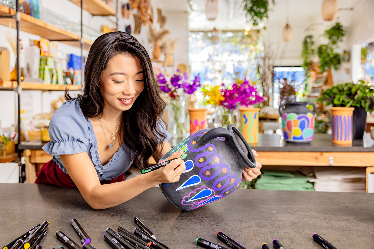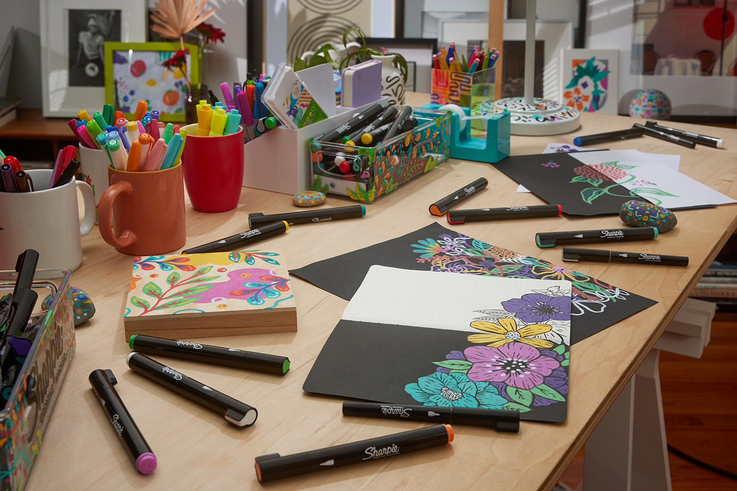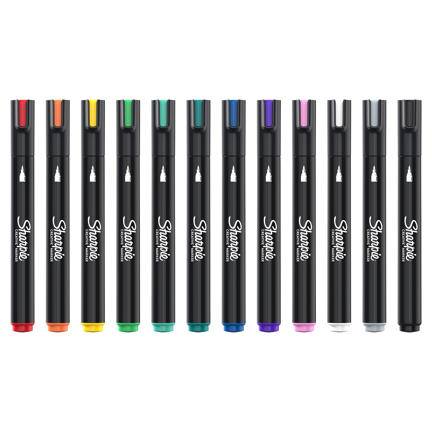 12 markerów na bazie wody w różnych kolorach. Ożyw swoją artystyczną wizję dzięki kreatywnym markerom Sharpie! Akrylowe markery zawierają specjalny atrament przypominający farbę, który idealnie pokrywa malowaną powierzchnię. Atrament na bazie wody nie przesiąka, dzięki czemu Twoja praca zawsze pozostanie czysta. Niezwykle wyraźne kolory zarówno na jasnych i na ciemnych powierzchniach. Akrylowym markerem nie trzeba trząść, żeby wyraźnie pisać – po prostu odkręć i twórz!