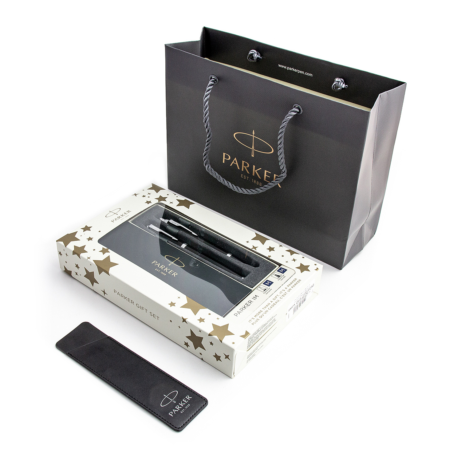Zestaw Parker Pióro Wieczne i Długopis IM Black CT z etui i torebką prezentową