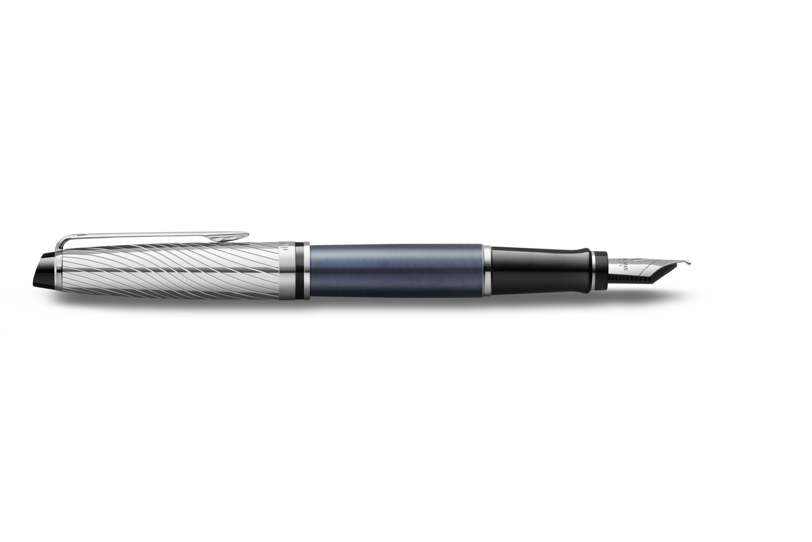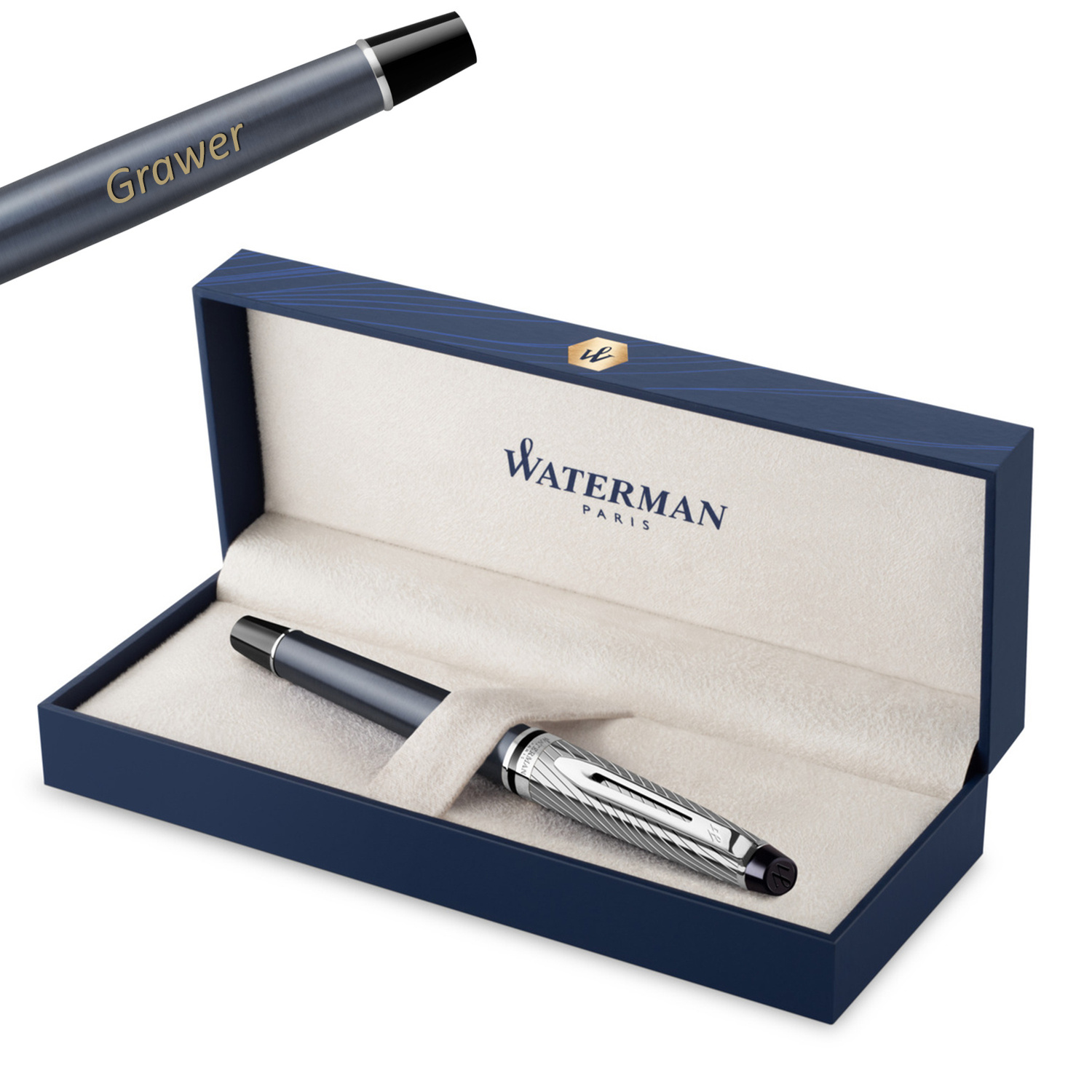 Zapewniając doświadczenie bezwysiłkowego pisania Expert Deluxe pozwala wyrazić swoje ambicje i czerpać przyjemność z pisania. Zwężająca się sylwetka korpusu i grawerowana nasadka ze wzorem w konturowane linie, inspirowana została ponadczasowym krawiectwem męskim. Wnosi francuskiego ducha, pewność siebie i autorytet w każdą okoliczność pisania. Korpus z metalicznym lakierem w kolorze kamiennej szarości, rozpoznawalny, rozdwojony klip Waterman i ścięta korona nasadki łączą się gładko z eleganckim emblematem zapętlonego W na stalówce ze stali szlachetnej. Kolekcja Expert Deluxe – symbol ambicji.